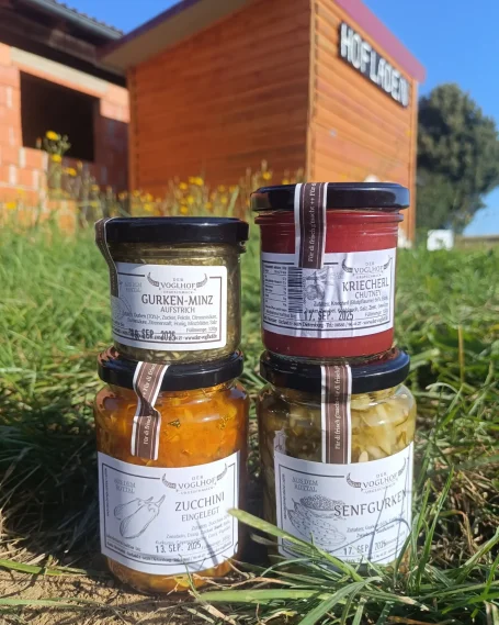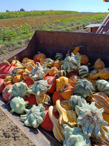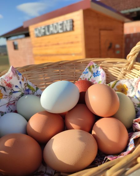 Bei uns findet ihr Kartoffeln, Kürbisse/Gemüse aus eigenem Anbau, Honig aus eigener Imkerei und Eier aus eigener Haltung. Außerdem auch regionale Produkte.