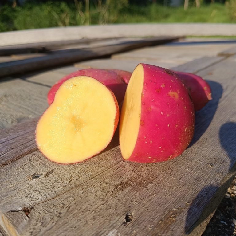 Juwel ist eine sehr schnell wachsende Kartoffel. Wir benutzen sie als Frühkartoffel, diese ist bereits Monate vor unseren anderen Sorten im Hofladen erhältlich.